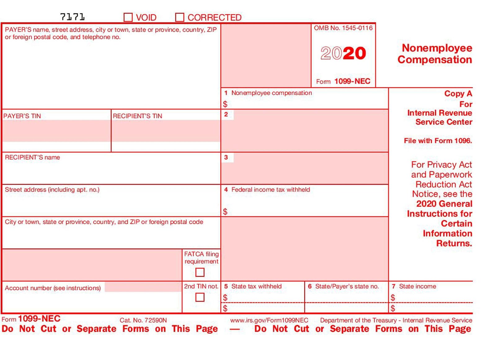 Some companies will be required to submit both Forms 1099-MISC and 1099 NEC form 2020 in some situations for the same employee, but this is unusual.