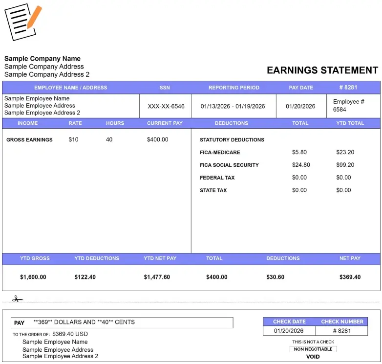 StubCreator is an online paystub generator tool to create accurate, detailed pay stubs easily without requiring a payroll system. This tool is specifically designed to meet the unique needs of employees, independent contractors, and any other type of business. It provides accurate calculations of federal and state taxes in all 50 states, allowing users to produce compliant paystubs.